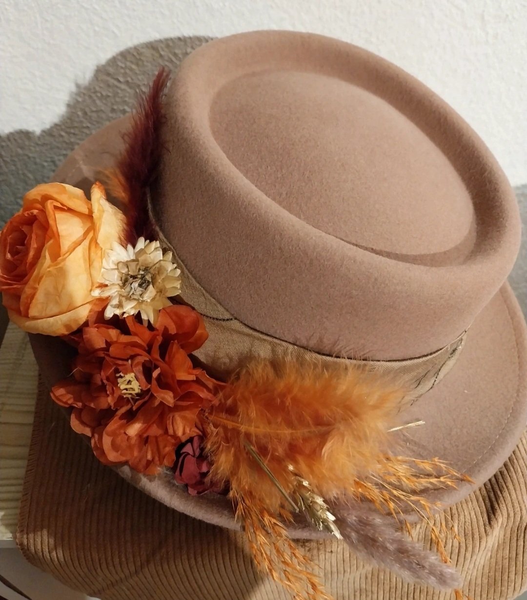 Plongez dans l’esthétique folk et poétique de bob Dylan avec ce chapeau en laine unique, décoré à la main de fleurs sechées et artificielles soigneusement sélectionnées.
