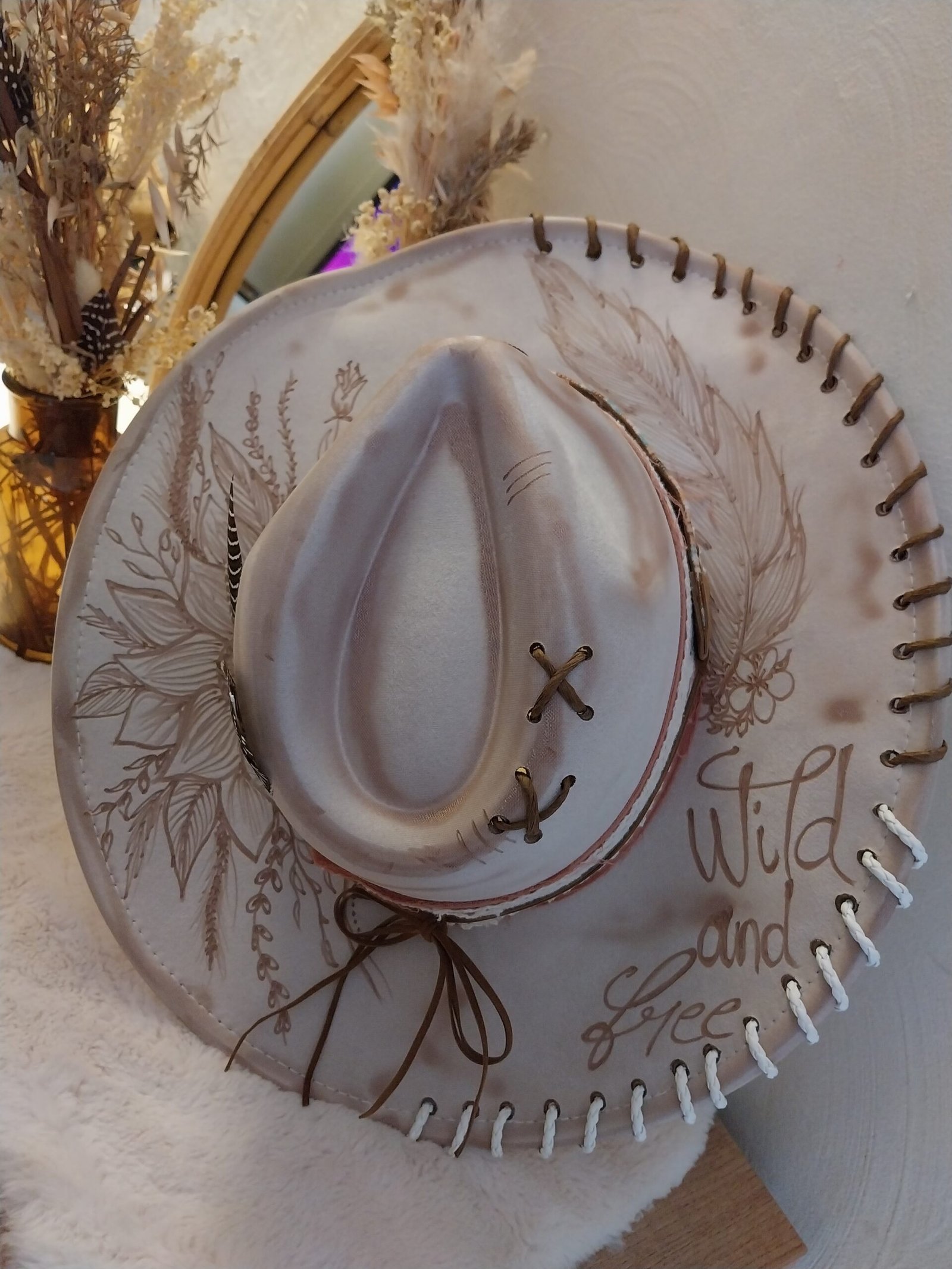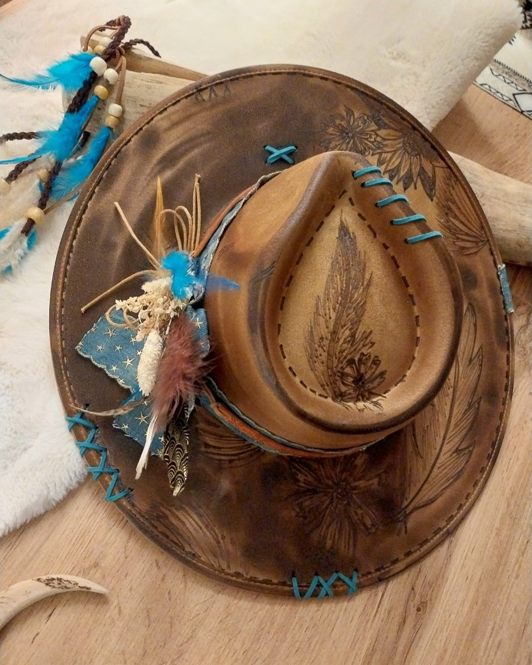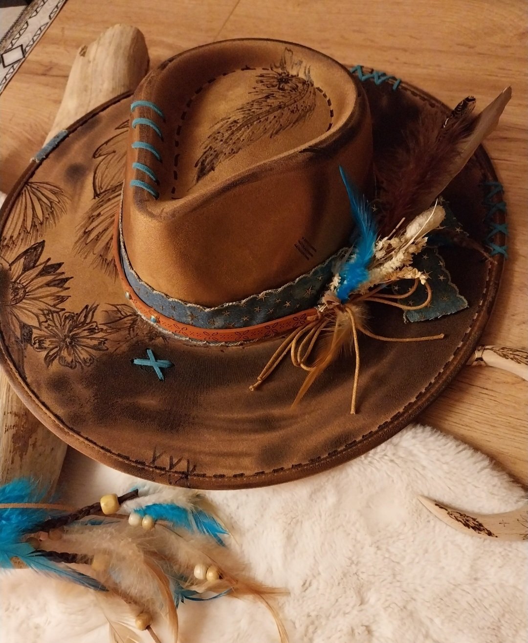 Découvrez un chapeau d’exception entièrement gravé à la main et customisé dans un style western authentique.